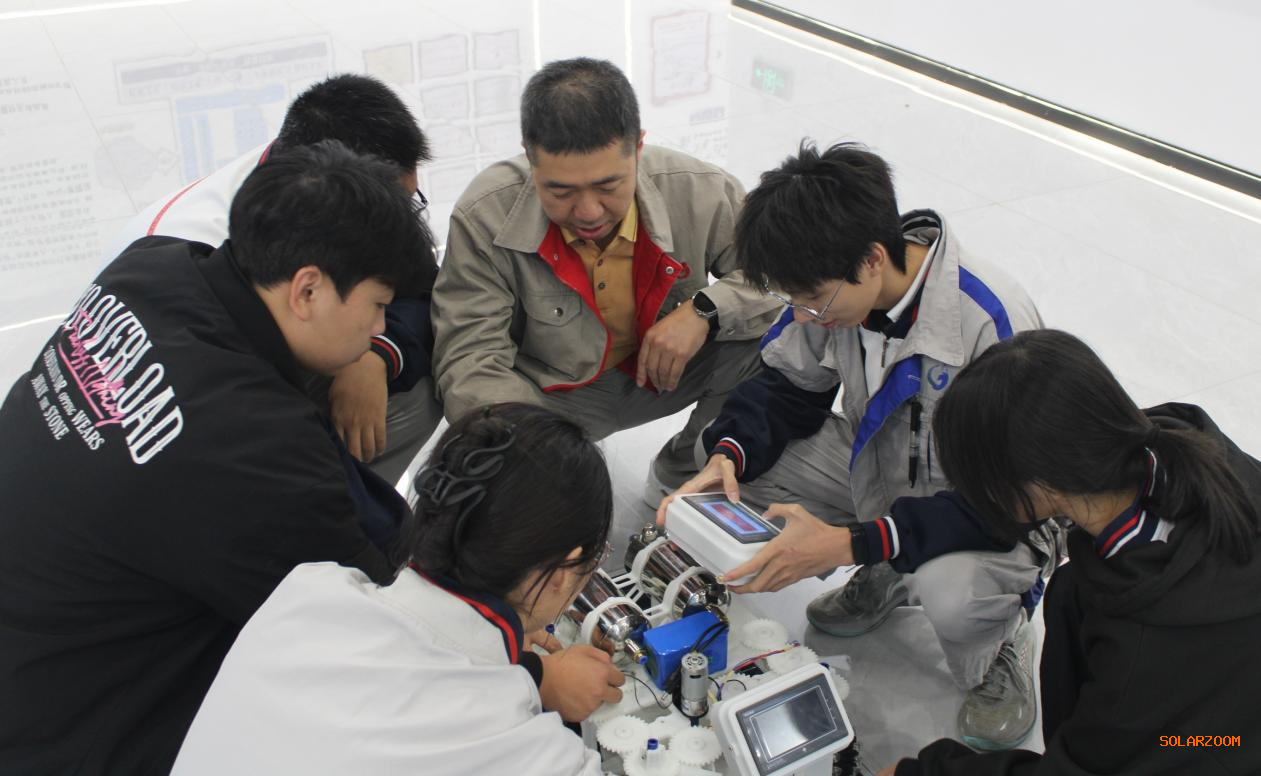 依托丰富的经验,黄浩怡老师提前对接欣旺达、隆鑫新能源等光伏企业的实际需求,确保技术研发与市场应用紧密衔接。学生陈嘉杰负责视觉系统组装与调试,通过优化传感器协同算法,使设备在15°斜坡、多障碍物屋顶等复杂场景下仍能保持200m²/h的清洁效率,单机日均清洗量超过5MW,效率较人工提升3倍。许慧姗通过精准成本核算,将设备成本控制在1–2万元/台,仅为进口产品的一半,显著降低了中小电站的使用门槛。